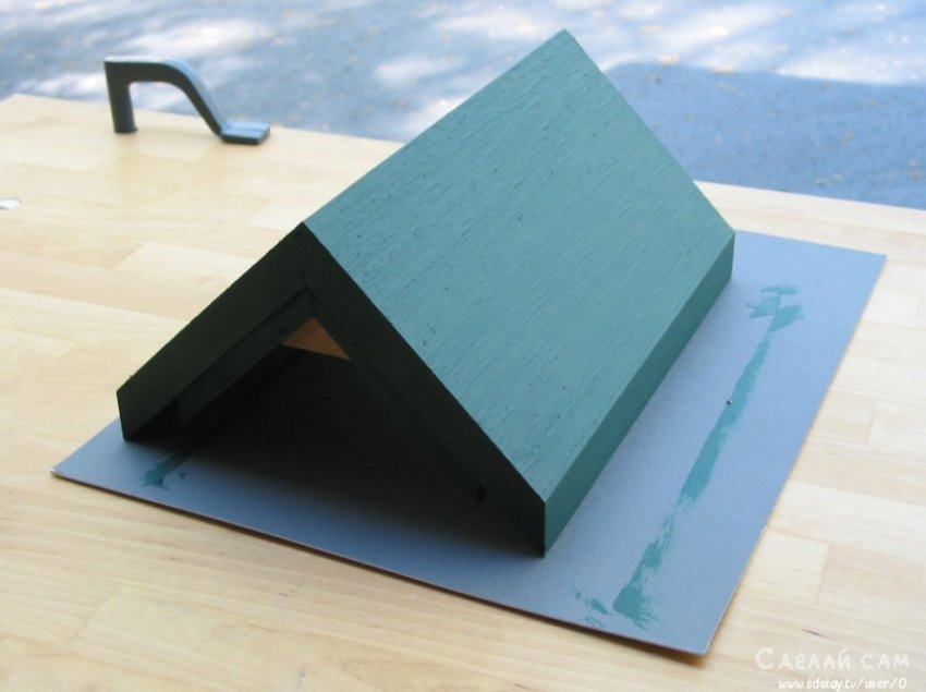 Прокрашиваем крышу. Прибиваем бортики к основанию.
