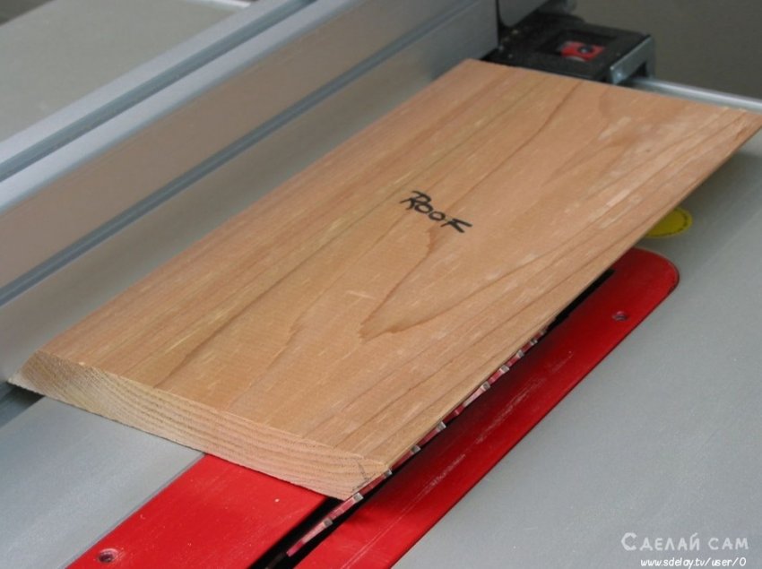 Крышу делаем из двух частей. Важно сделать максимально правильный (ровный) срез, что бы крыша стала стык в стык.