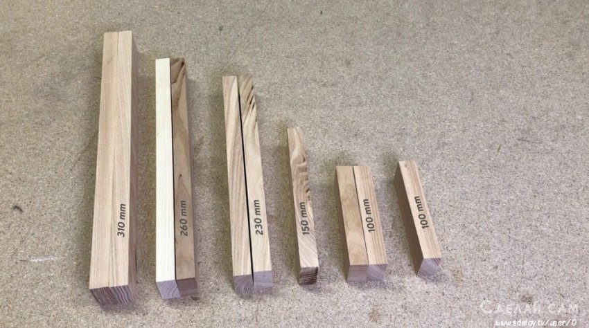 В основании - две длинные рейки (тело), четыре короткие (лапы), один хвост (короткий) и под шею (чуть длиннее).