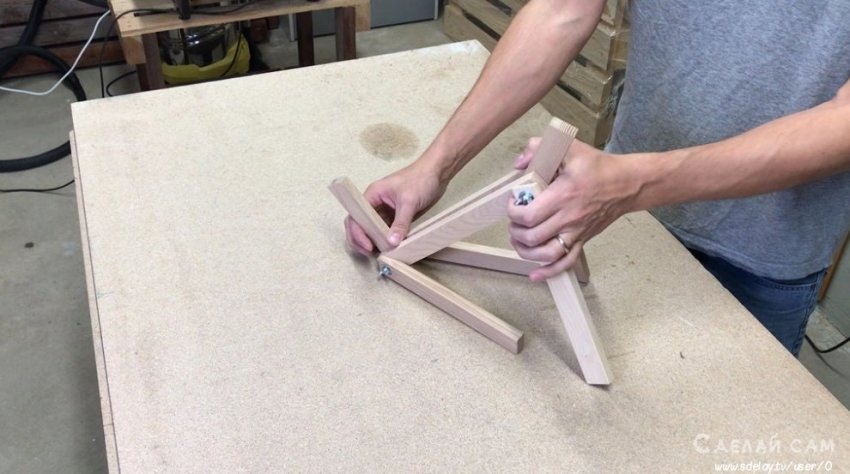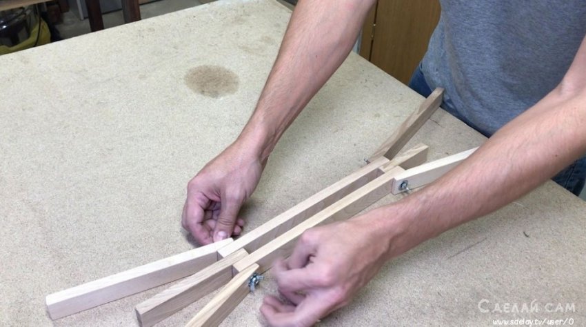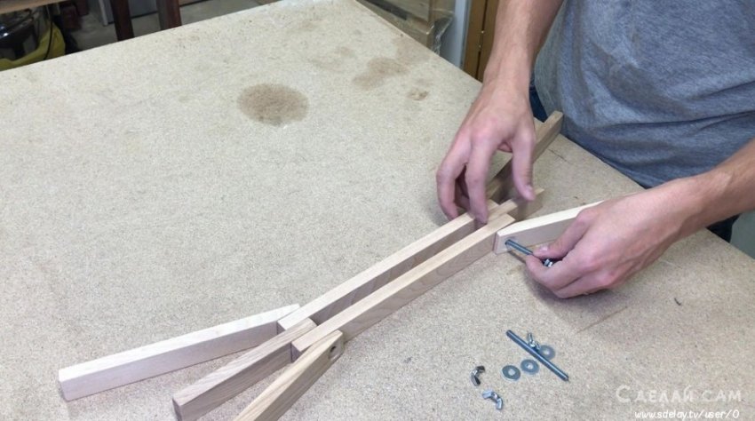 Соединяем на эксцентриках. Что бы было удобно регулировать, двигать частями и т.д.