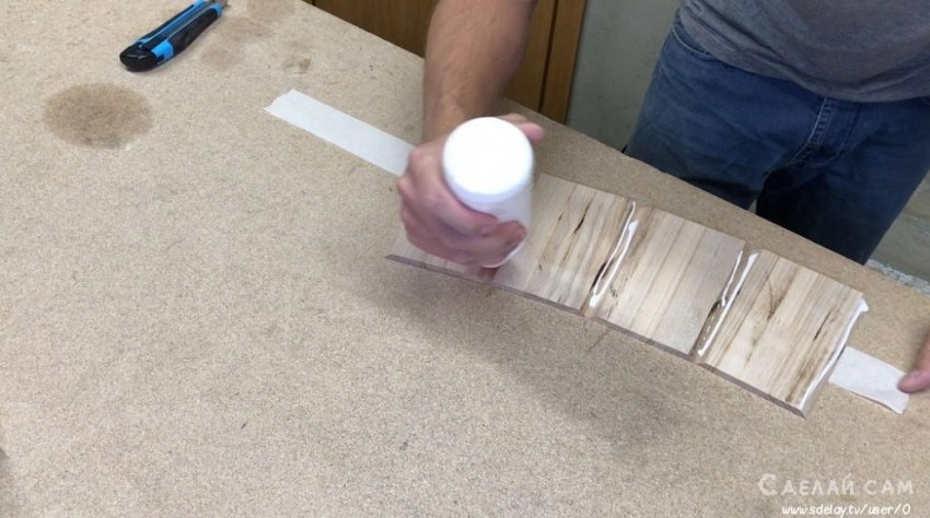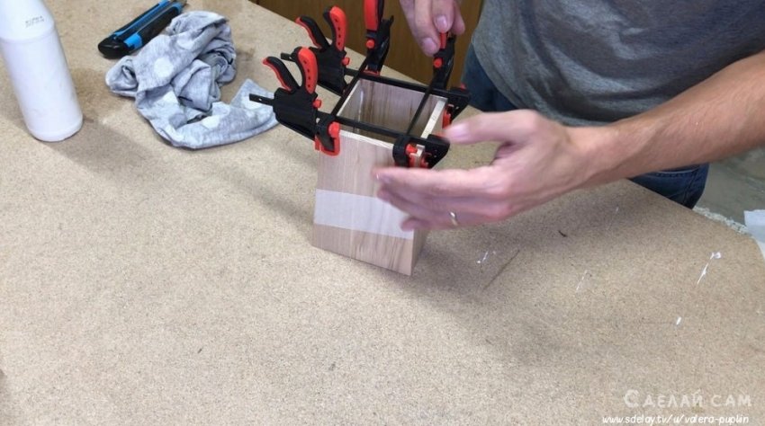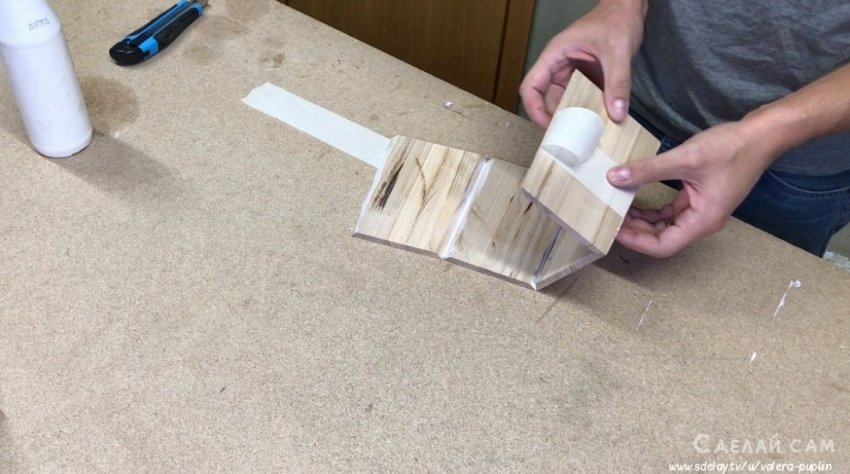 Голову (прожектор) делаем из четырех частей. Для удобства - фиксируем малярным скотчем до полного высыхания.