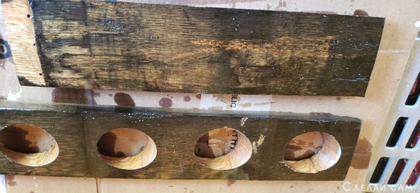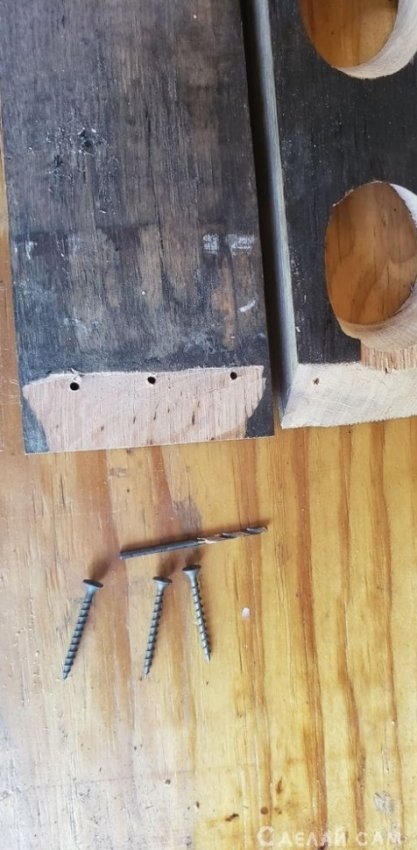В качестве основы, я использовал две старые доски. В одной из них проделываем отверстия под вазоны.