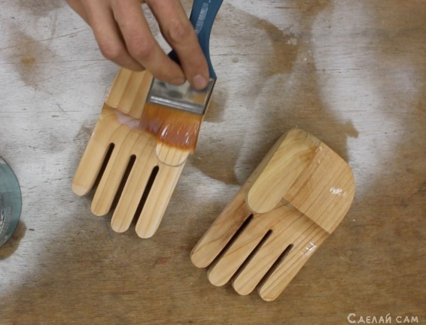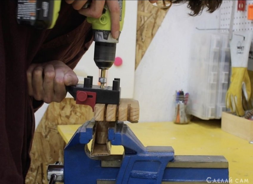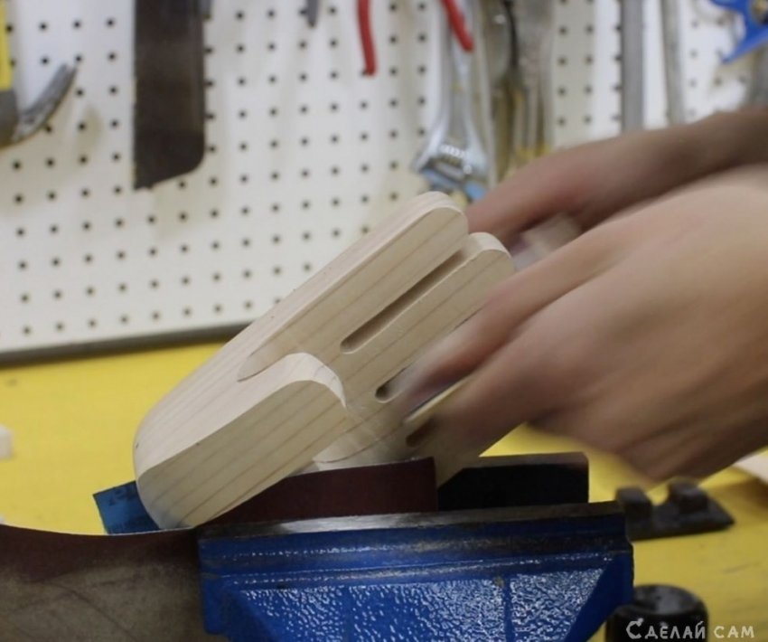 Руки-держатели я изготовил из двух деревянных брусков.