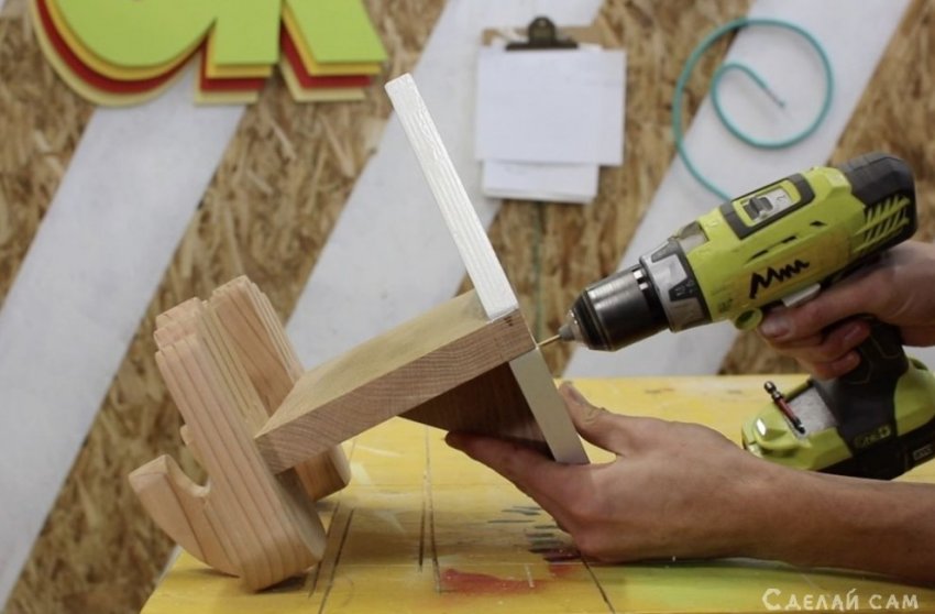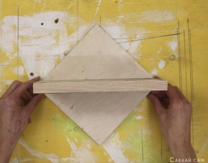 Руки - это половина дела. Остается сделать также крепление, под них. Основа нашей вешалочки - квадрат. К нему крепим доску.