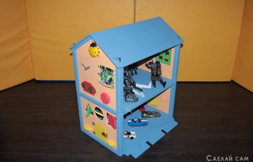 Придумал решение при котором бизидом одновременно можно использовать и как кукольный домик для девочек или гараж для мальчиков. По мере роста ребенка часть панелей легко можно убрать, давая больше пространства для кукол или машинок. Или заменить панели на другие, более подходящие возрасту ребенка.