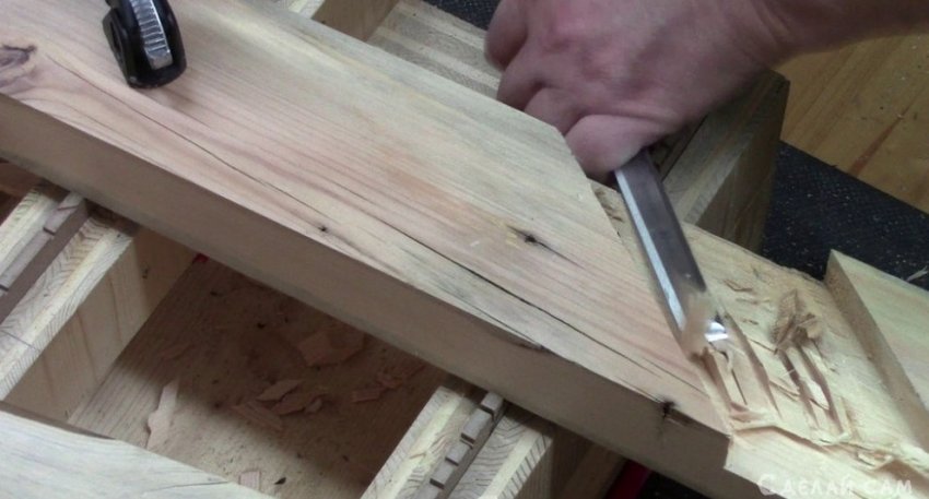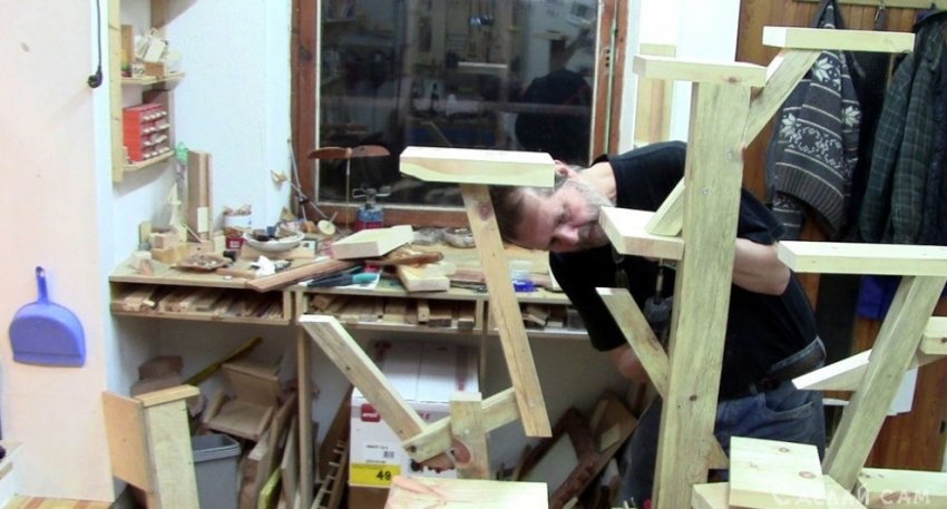Принцип полки достаточно прост. Есть основание, к которому крепятся ветки. Я решил не делать больше 3 уровней. Для фиксации стволов я вырезал канавы в основном стволе. Что бы несколько уменьшить перепад уровней.