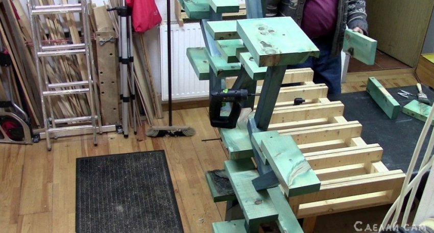 Места креплений замазывает грунтовкой по дереву. Далее шлифуем поверхности, покрываем краской.