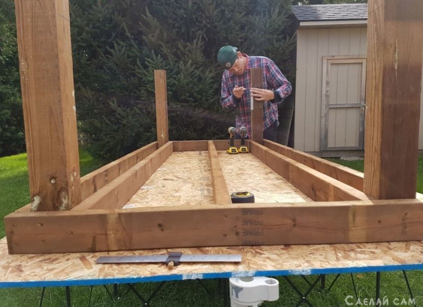Первым делом, нужно сделать основу. Раму для будущего стола. Решил делать капитально, не на один год.