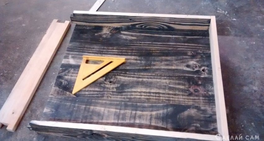 Начнем с того, что поддон нужно разобрать. Снять гвозди.
