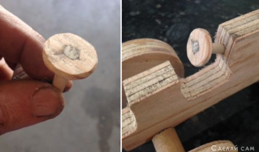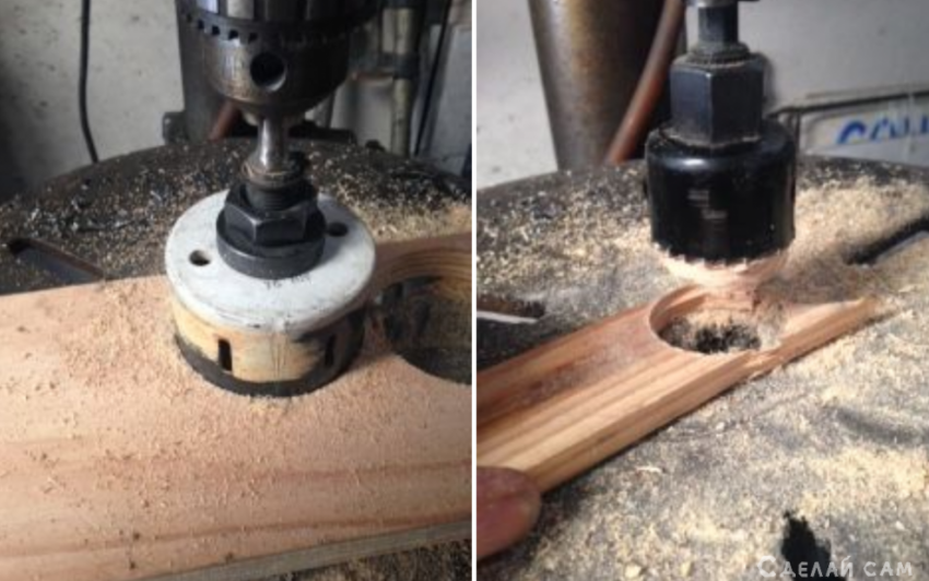 С задней осью немного сложнее. Нужно проделать отверстие (посадочное место_ по средине деревянного круглиша.