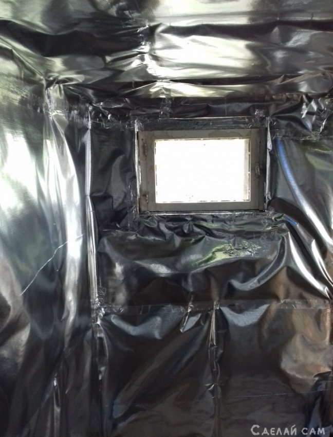 Внутренняя часть вся обшивается спец пленкой, для отражения тепла и влаги. Что бы конструкция была сухой, и не пожароопасной.