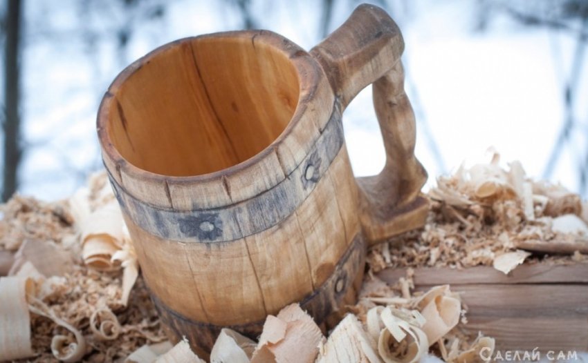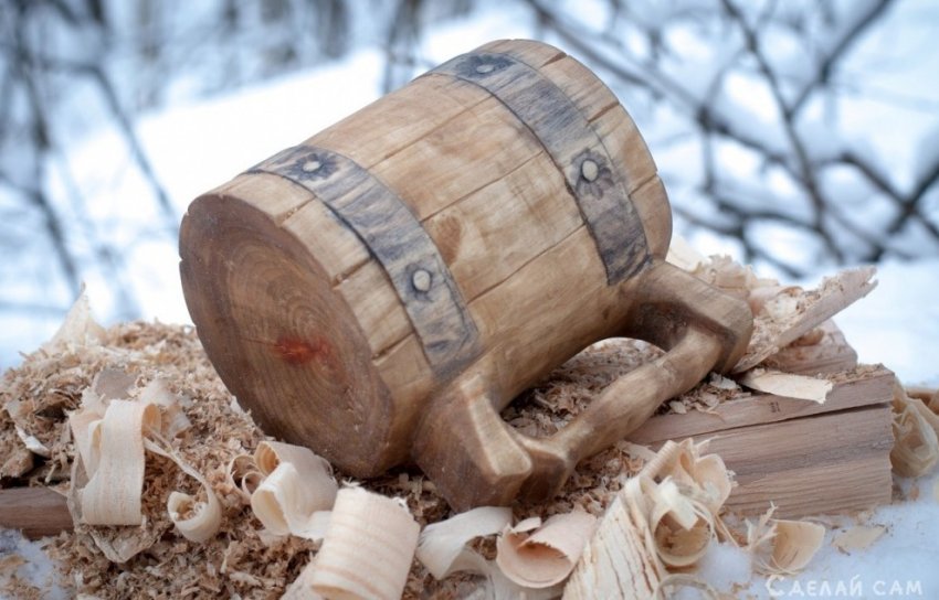 Сегодня наткнулся на интересную работу одного российского мастера. Кружка выполнена из дерева. Работа очень понравилась, потому решил поделиться ею с вами. В принципе, имея стандартный набор инструментов и руки из нужного места, можно сделать кружку самому.