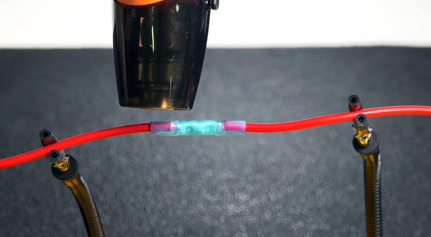 Затем та прогревается, чтобы усадить трубку. Получаем очень быстрое соединение с хорошей изоляцией.
