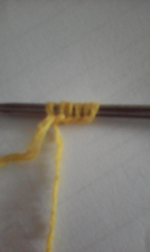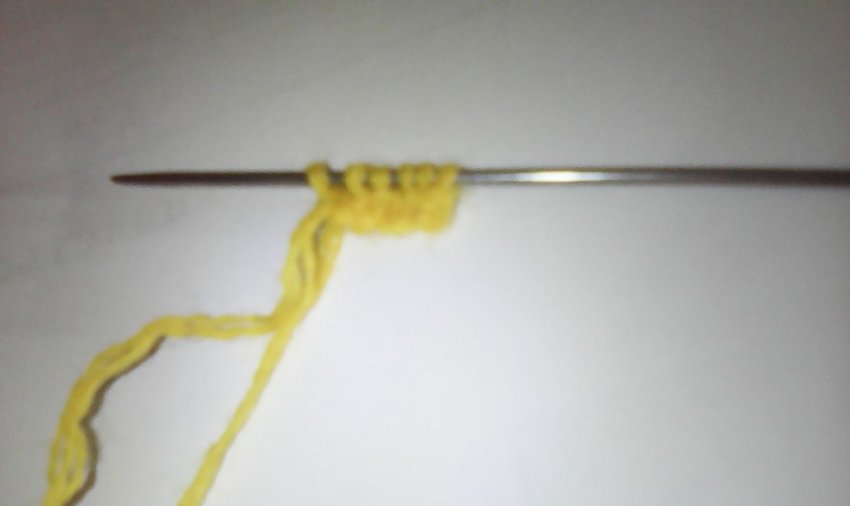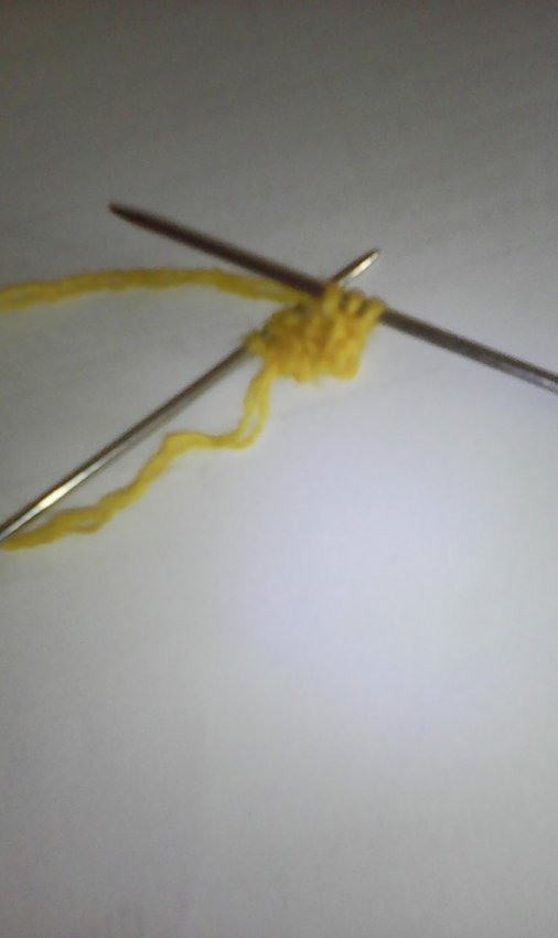 Начало работы: сложив вместе обе спицы, набираем 6 петель