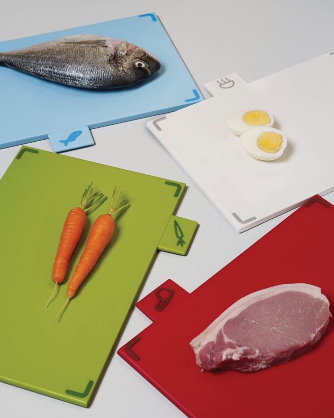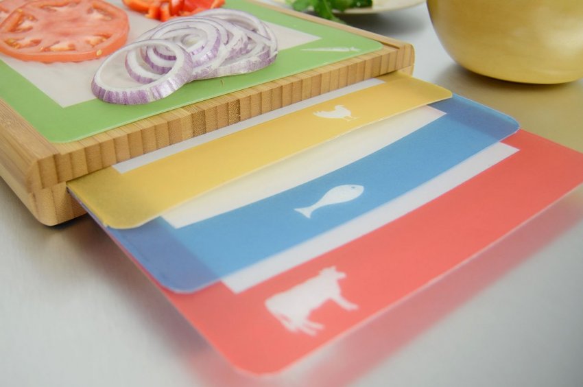 А эти доски позволяют соблюдать правила безопасности при приготовлении различной пищи, и экономить место на кухне.