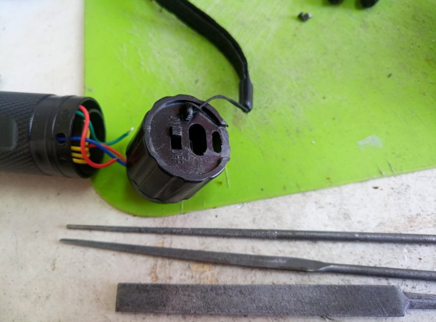 Где был установлен светодиод надфилем увеличиваем отверстие для разъема зарядки но с запасом, чтобы было видно индикатор зарядки.