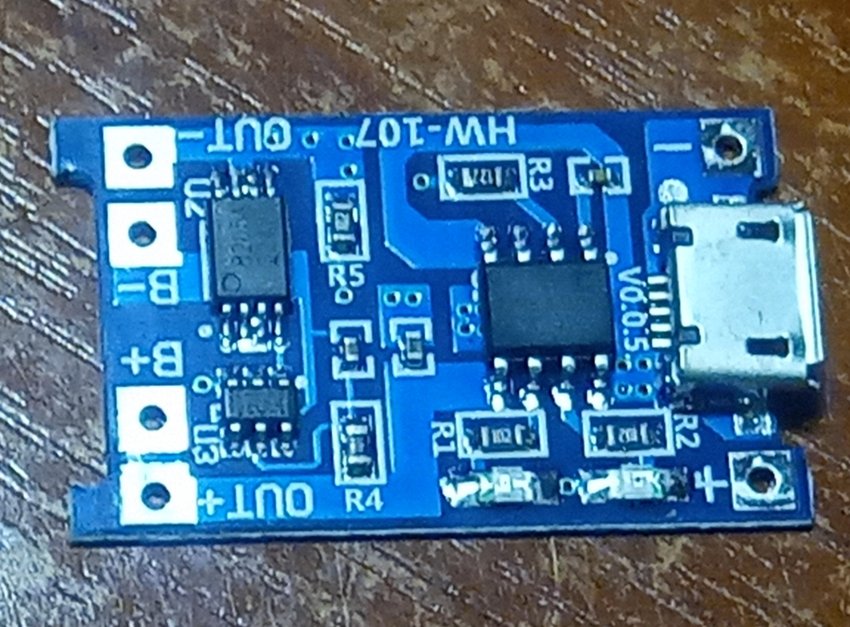 Выпаиваем все перечисленное с белыми проводами и припаиваем Модуль заряда TP4056 для аккумуляторов 18650 micro-usb
