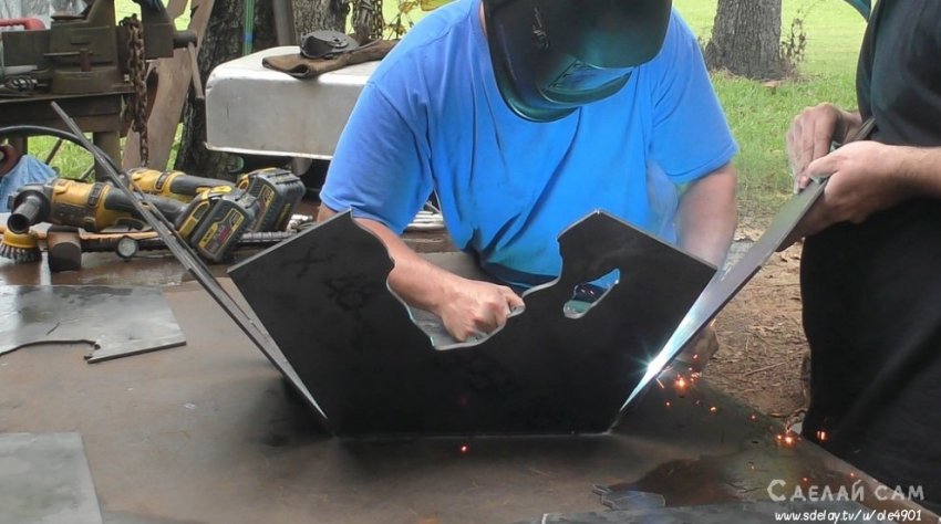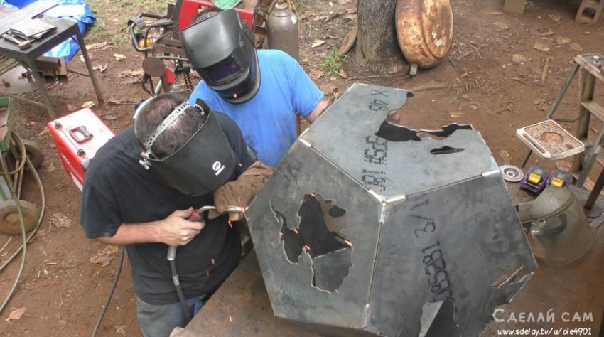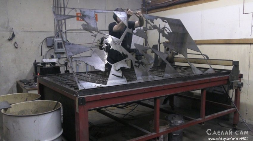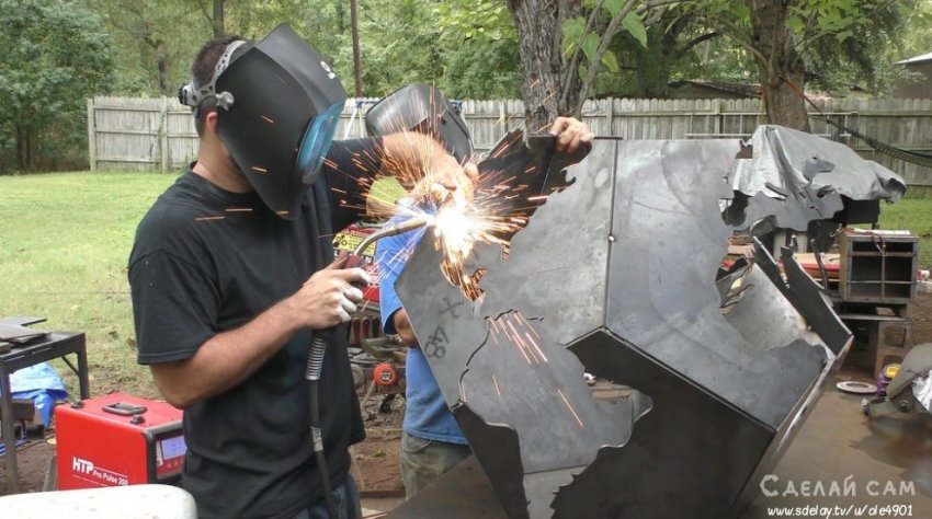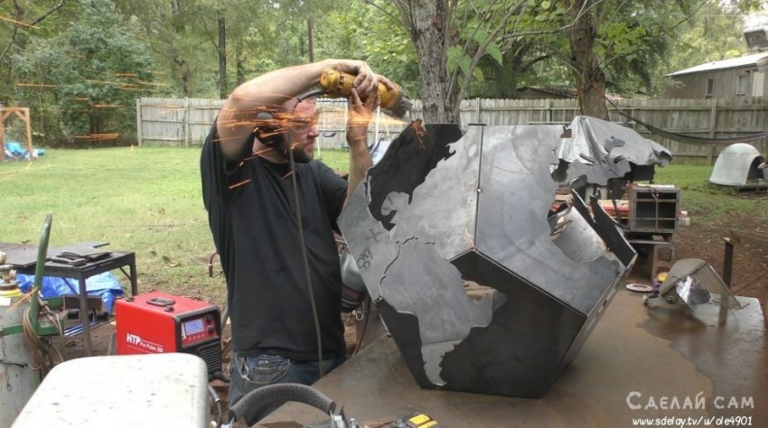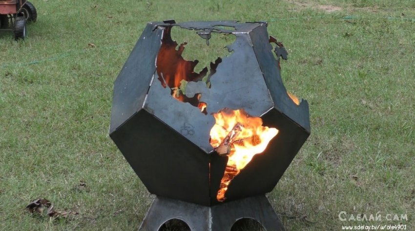 Замысел в том, что бы сделать мангал в виде многогранной фигуры с контурами континентов. За основу взял толстый лист стали.