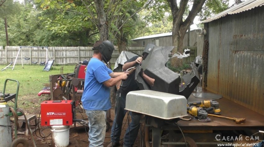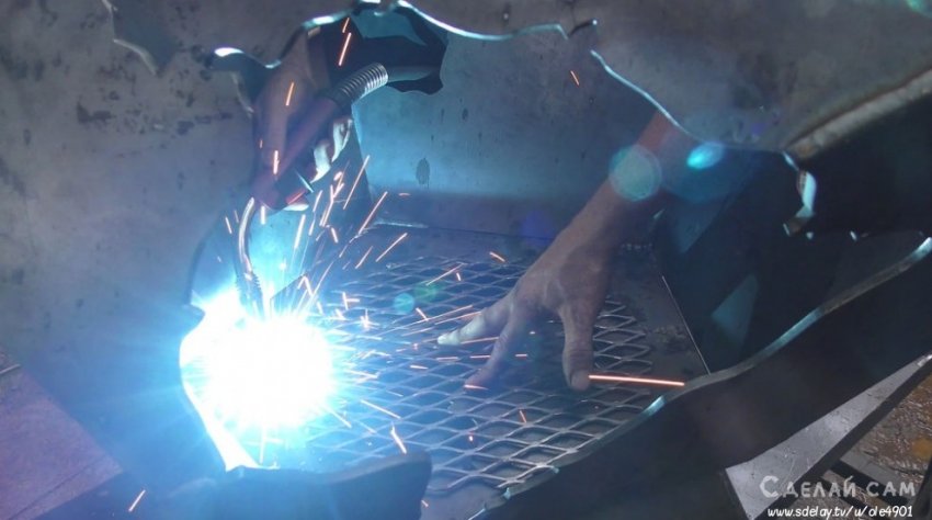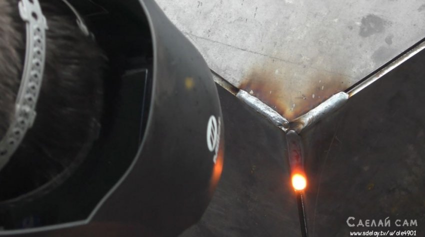 Делаем небольшие закрепки. Полностью проваривать швы не нужно, так как покрутит металл.
