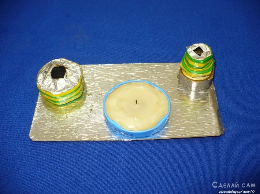 В качестве топлива использую магазинные парафиновые свечи-римерно куски высотой 3-4 см(горит такой 1-1.5 часа)