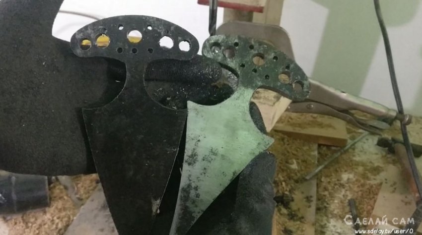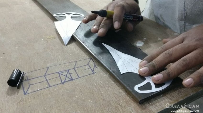 Макет ножа рисуем на бумаге, прорабатываем конструкцию. Размечаем на металле. После чего вырезаем заготовку.