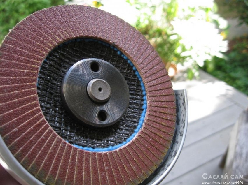 С помощью шлифовальной насадки, на болгарке, снимаем слой ржавчины с поверхности клинка.