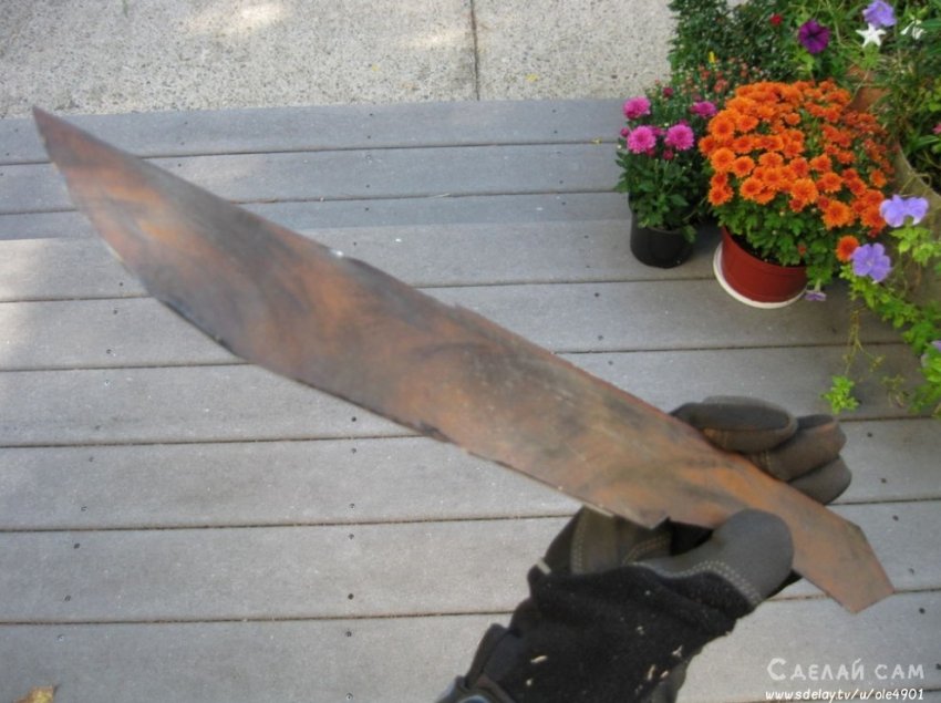 Стачиваем неровности. На выходе имеем готовый клинок, хоть и со следами ржавчины, к тому же невероятно тупой.