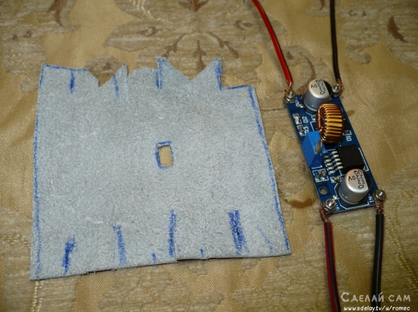 По скольку регулятор идет просто платкой-без корпуса-сварганил для него простую оболочку из мебельной кожи(при желании и возможности можно найти регулятор в красивой коробочке-но их очень маленький выбор и ценик в 3-5 раз дороже).А ак получилось простенько и бюджетненько как то так.