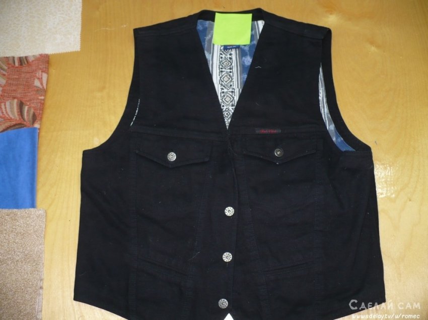 Сразу пришили липучки(можно купить-в любом швейном_мебельном магазине) и ответные части липучек на сам жилет