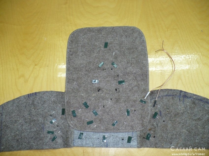 далее из войлочных ковриков сделал основу (будущую накладку)где будет размещаться нагревательный элимент и доп оборудование.