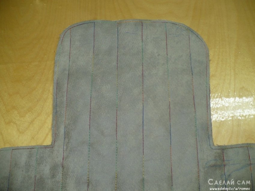 Все это прошил -получилось со стороны тела-ИССКУСТВЕННАЯ ЗАМША(мебельная ткань)плюс ее в то что она хорошо чистится.