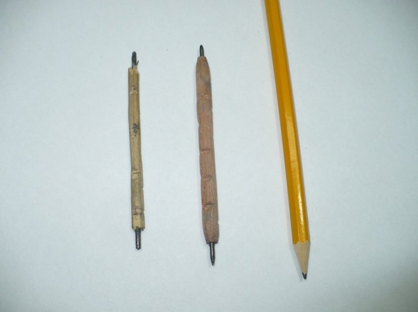 Я перепробовал разные варианты защиты стержня..от простой термоусадки до различных трубок.Мороки много-толку мало.Решил его оставить в его родной оболочке-только сточил максимально и сделал надрезы.НА ФОТО карандаши с разными оболочками(рыхлое и твердое дерево).