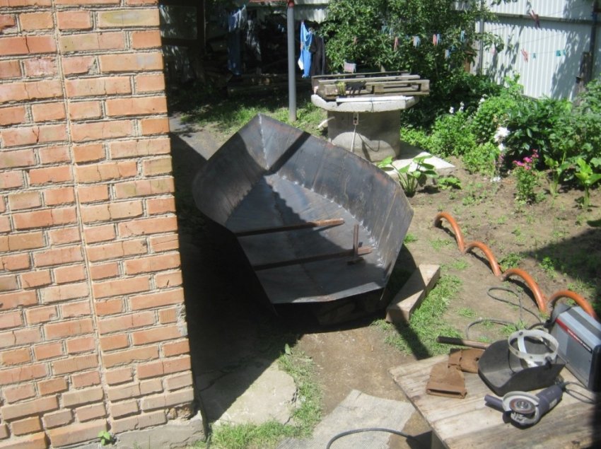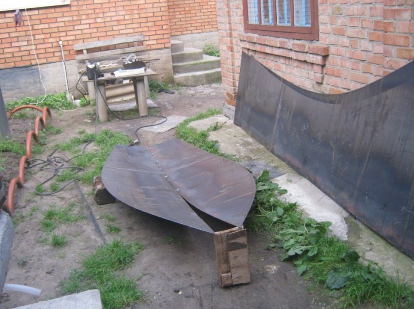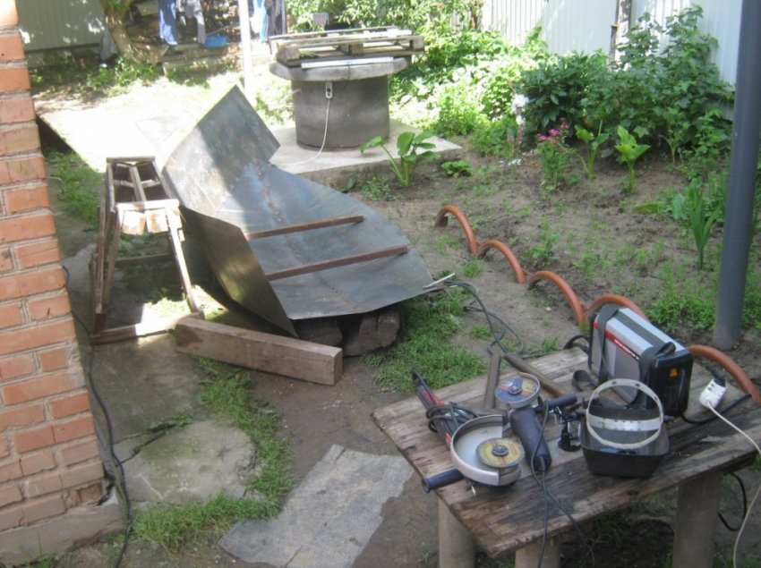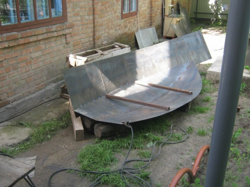 Ниже я делюсь с вами фотографиями процесса изготовленя лодки из листового металла. Для работы понадобится металл, болгарка, сварочны аппарат и большое жаление!