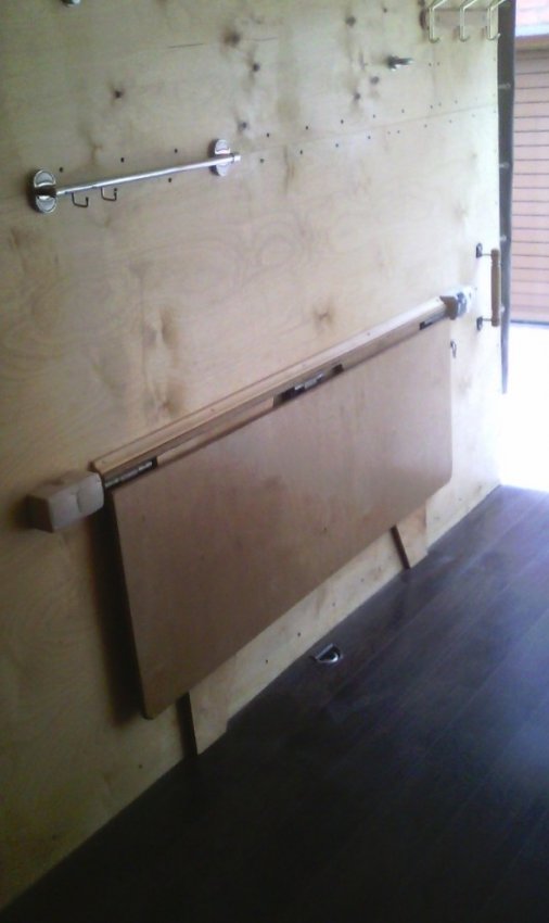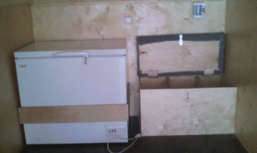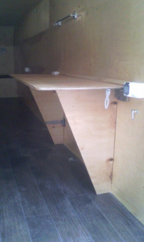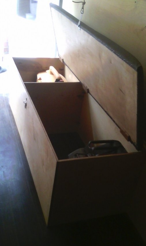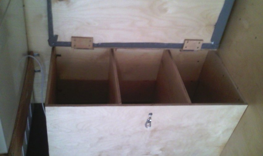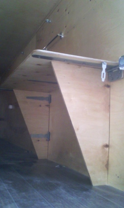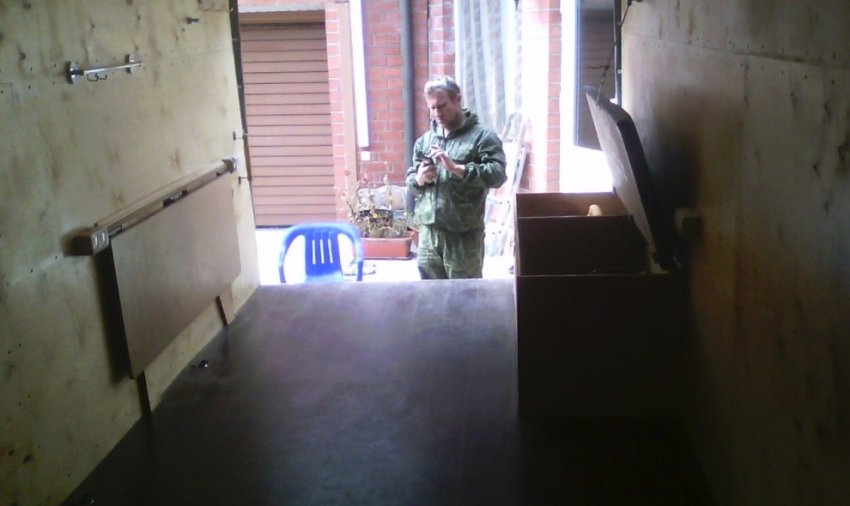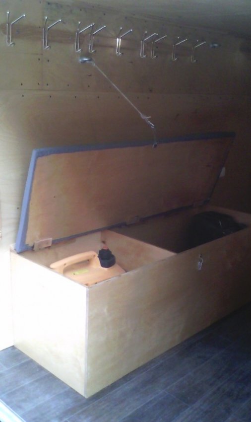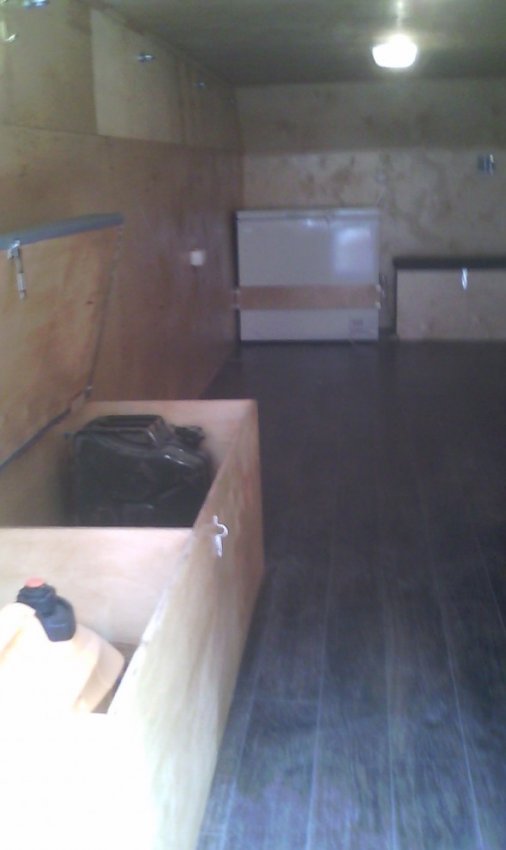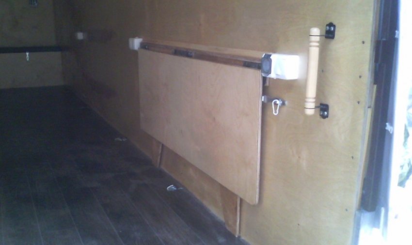 обшили каркас прицепа доской (предали жесткость),затем зафанировали,покрыли яхтным лаком всё снутри и снаружи на 2 раза, сделали мебель. по стенам и полу в шахматном порядке усилинные кольца для крепления груза (предполагалась большая мотор.лодка, раскладушки ну т.д. и т.п.) мебель тоже вся фиксируется.генератор,топливо,плитка. на крышу(на скошенную часть) предполагался 200 литровый бак для воды и душ.
