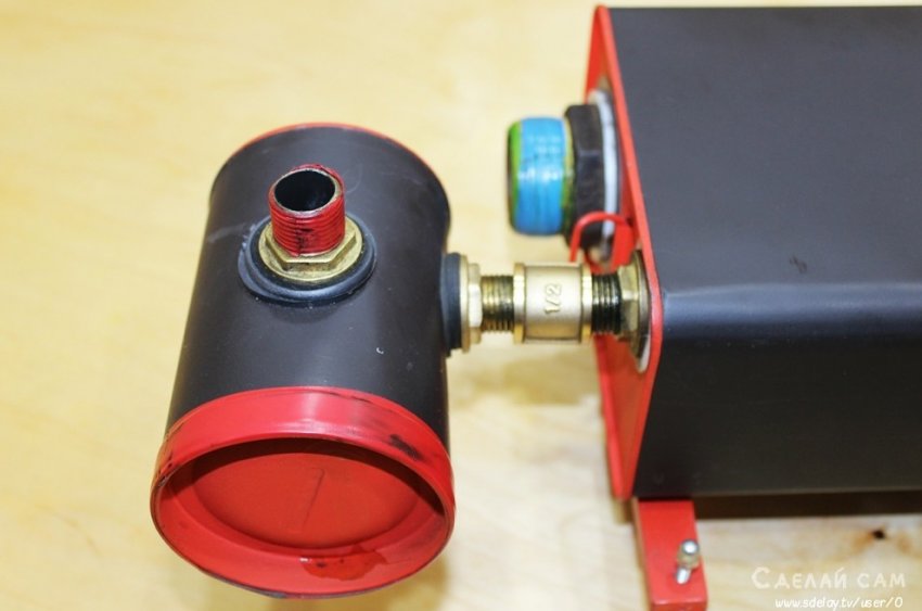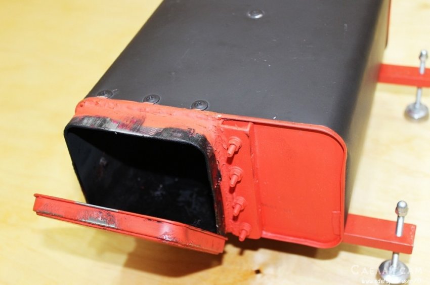 Для защиты метала покрасил ее жаростойкой краской.В передней части врезал металическую сахарницу-это для того что бы была плотная калитка для заправки топлива.