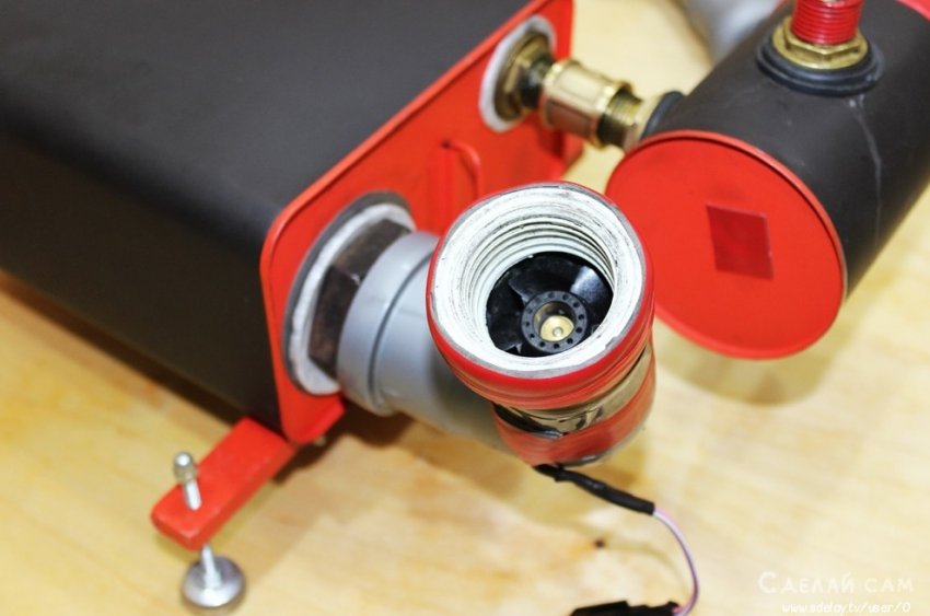На закачку воздуха поставил пластиковый поворот из 50ки трубы.