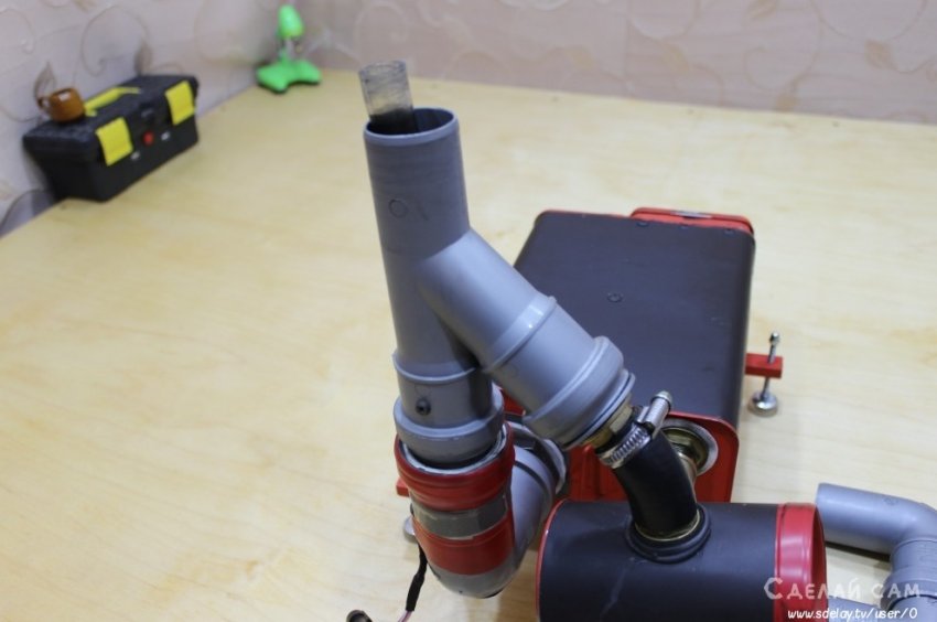 Следом идет переход на 40ю трубу и соединитель двух входов в одну трубу.