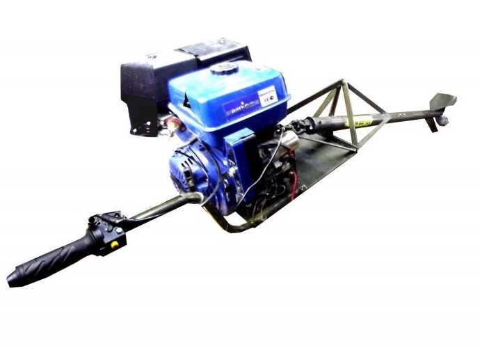 С боку приварен кусок трубы в который вставлена рукоятка и зафиксирована двумя болтами. Ручка газа стандартная от мопеда. Внизу установлена пластина над пропеллером для снижения его кавитации. Под пропеллером находится ограничительное перо для защиты пропеллера.
