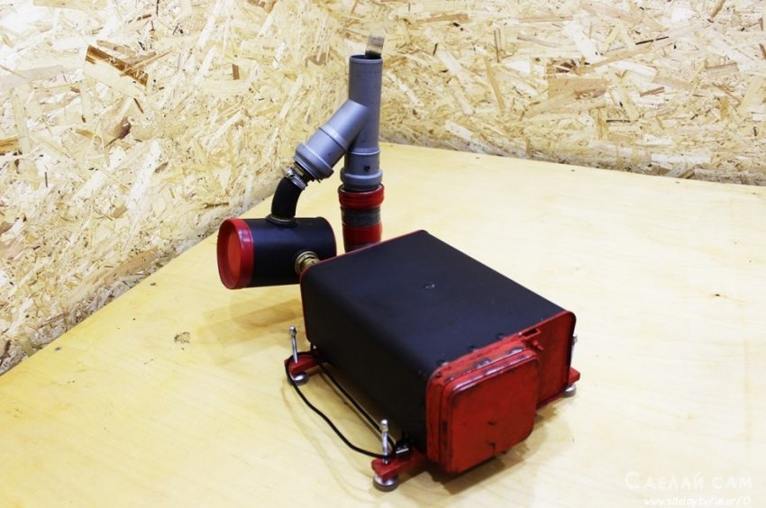Вот тут он стоит со вторичним теплообменником и полным дымоходом-это вариант для палатки.