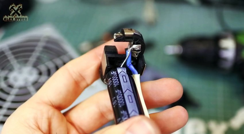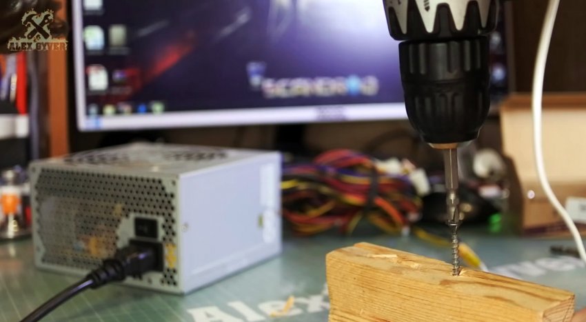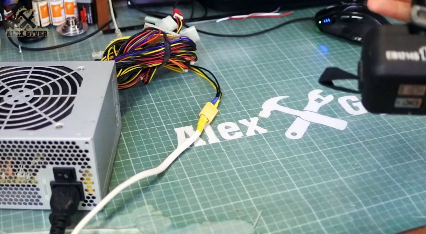 Если блок питания окажется слабым для вашего шуруповерта, то он будет уходить в защиту даже с конденсатором. Тогда нужно подсоединить к нему отдельную нагрузку. Это может быть старый жесткий диск. Также помогает установленная лампочка 5Вт 6 В на линию блока 5 В. Переделав так свой шуруповерт, вы сохраните возможность в любой момент отсоединить от него доработанный корпус батареи, и ставить обычный аккумулятор.