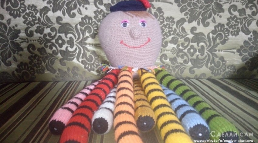 Эта сладкая парочка доставляет огроное удовольствие моим гостям. Они с большим удовольствием тискают их. Связаны они спицами и грючком, наполнитель синтепух. Можно стирать (при 30 градусах!), Можно использовать в качестве игрушки, а можно как декор Вашего дивана. Все детали прикрепленны очень хорошо,поэтому без опаски играют дети! Малыши будут в полном восторге!!!