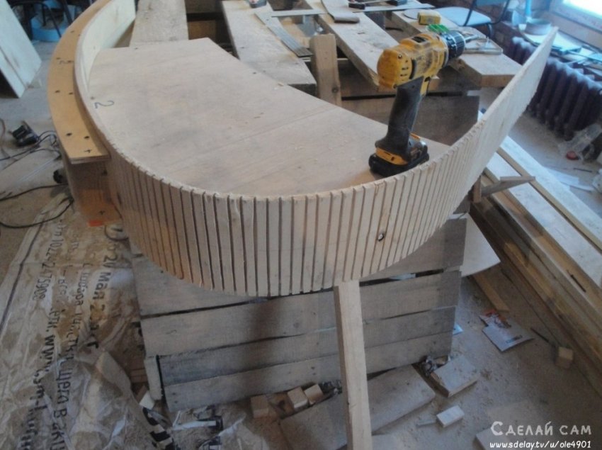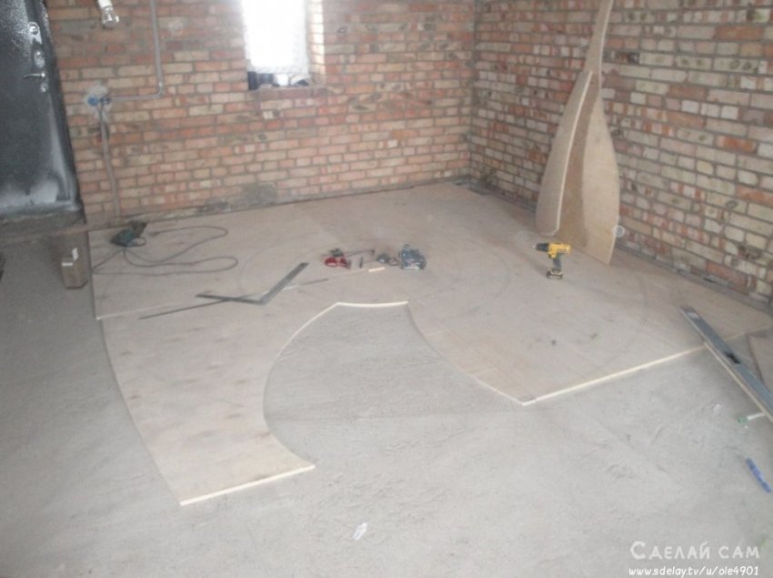 Для опалубки используем толстую фанеру. Основа - арматура, бетонный раствор. Примерно 10 тысяч рублей ушло на материал для опалубки. На бетон - порядка 15 тысяч.