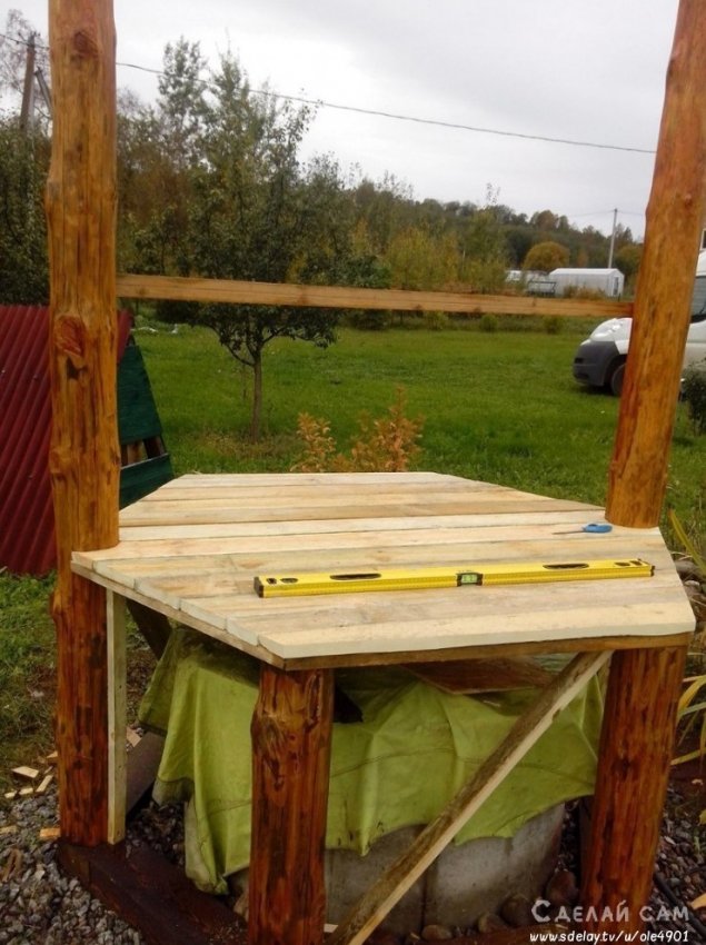 Идея не нова. Просто на фото очень хорошо видна поэтапность всех работ. У автора данной работы оставались деревянные остатки, после строительства дома из бруса. Кое какой материал пришлось докупить. Что из этого вышло? Смотрите сами.