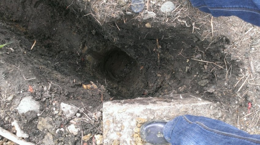 Пробил стенку колодца и хлынула вода