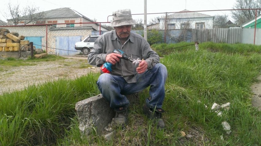 Колодец был полный воды, откачивали ее вот этим шлангом и самотеком на переулок. Такой перепад высот.