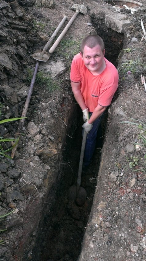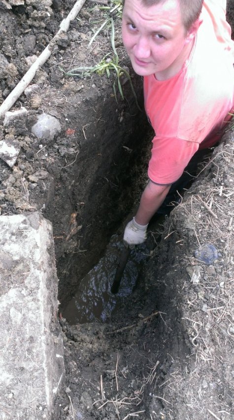 Углубился еще ниже уровня траншеи на сантиметров 40.