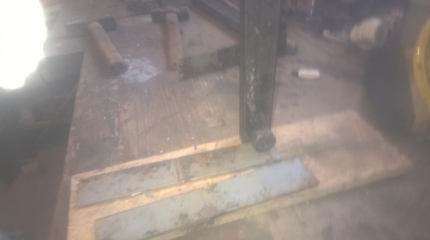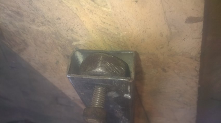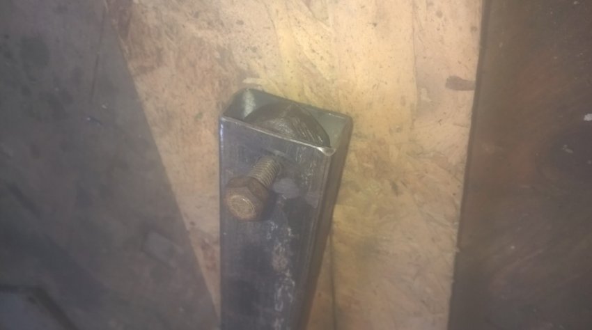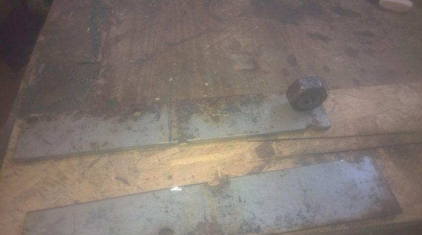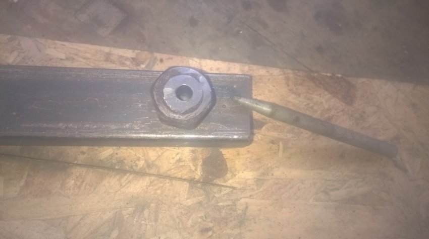 к одной из пластин привариваем гайку, ровно по центру. к другой профиль, в моем случае 20*40*1,5мм.