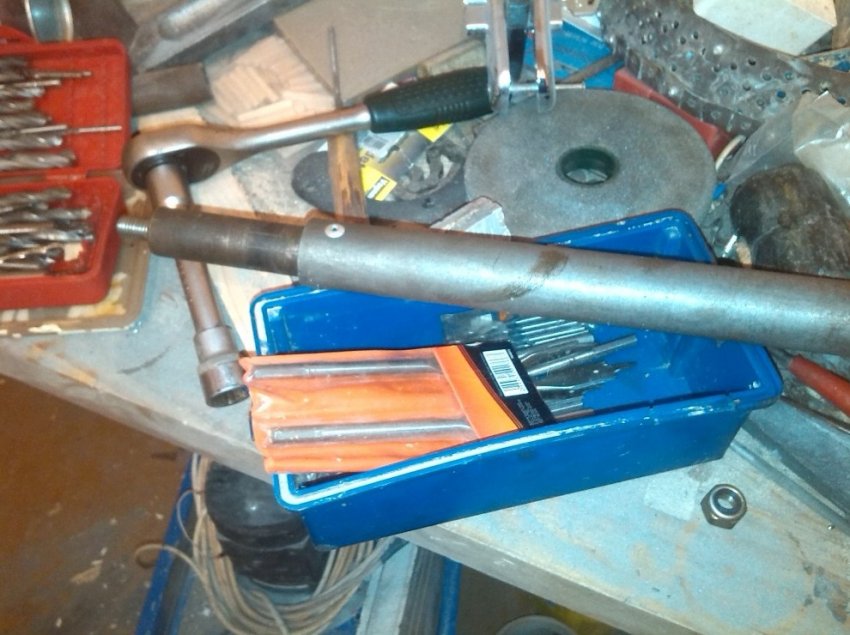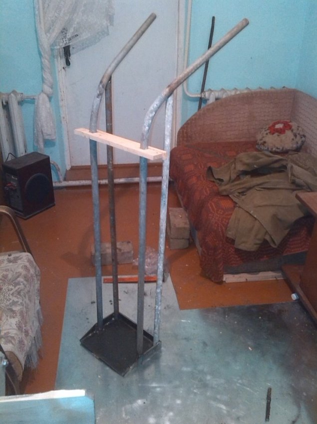 в общем держатель собирался из того что под руками, у меня всегда обычно есть обрезки от труб различных "D" в данном случ. 16 и 18я.не стоит утяжелять !!! ее же потом нужно и таскать самому;) да и запас мочность на 0,5т :))))))) фиксировать временно можно как заводскими струбцинами так и самодельными приспособами, как и просто на временные эл. заклепки поставить. я в данном случае на скорую руку собрал такую "приблуду:)"