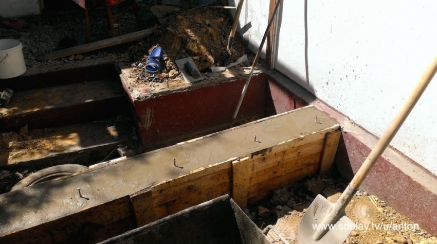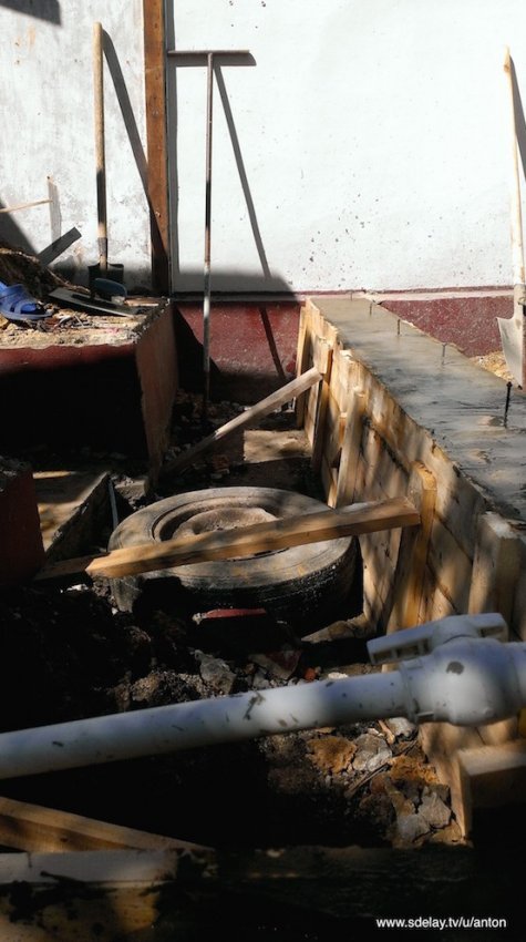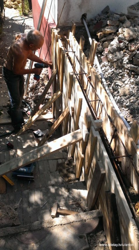Заливка бетона и доделывание опалубки происходило одновременно ))