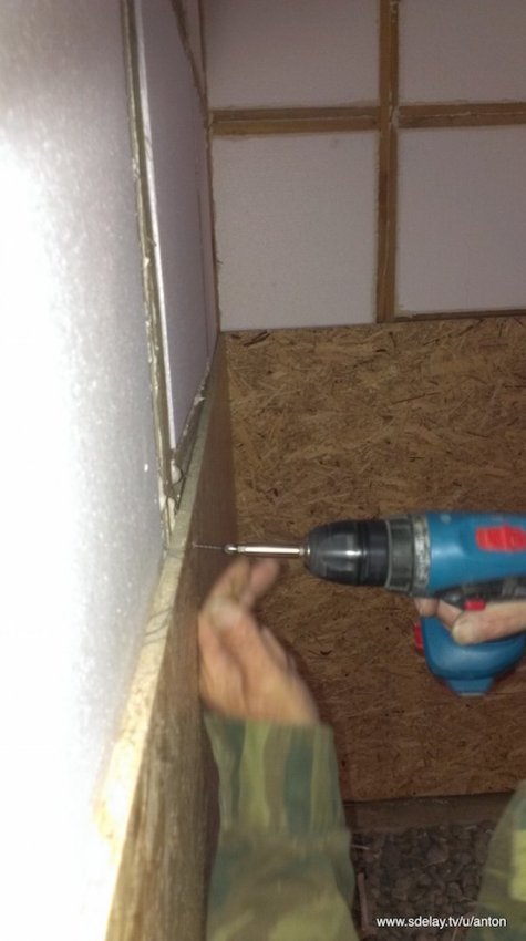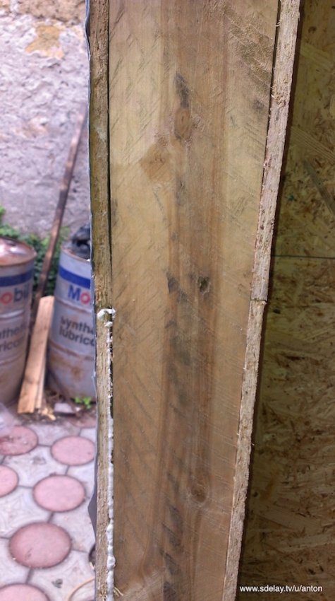 Снутри и снаружи всю постройку обшили OSB плитой (Ориентировочно стружечная плита)
